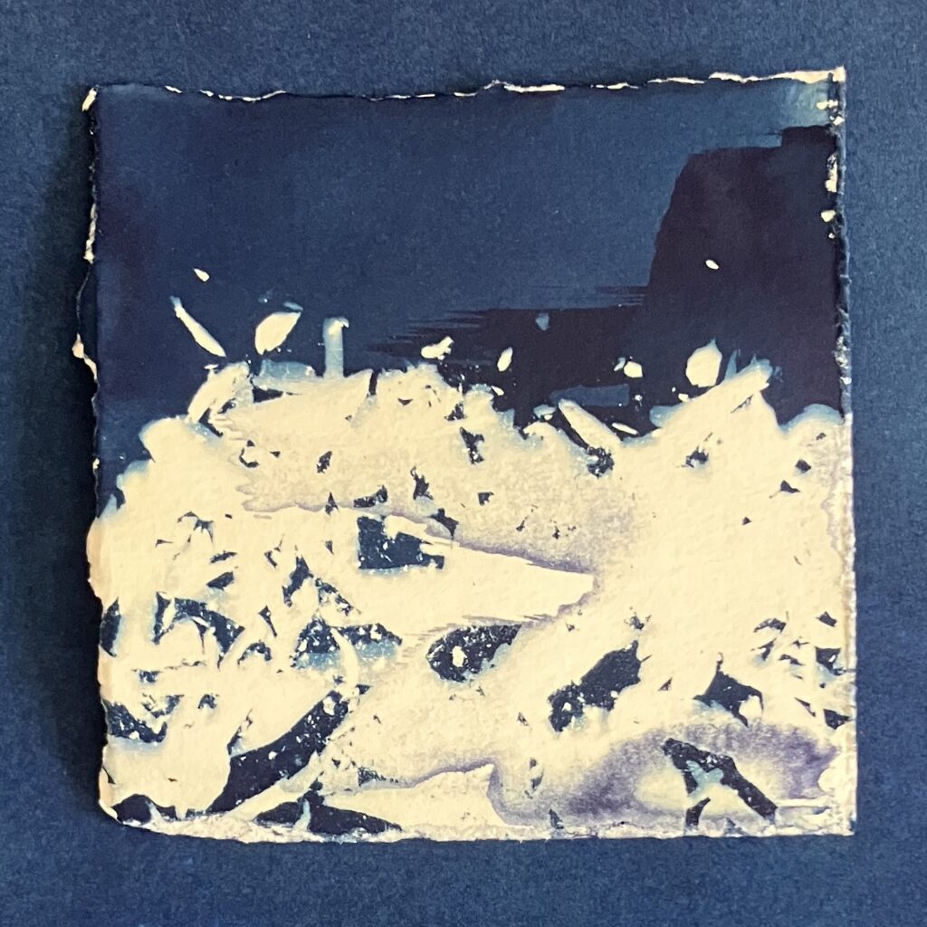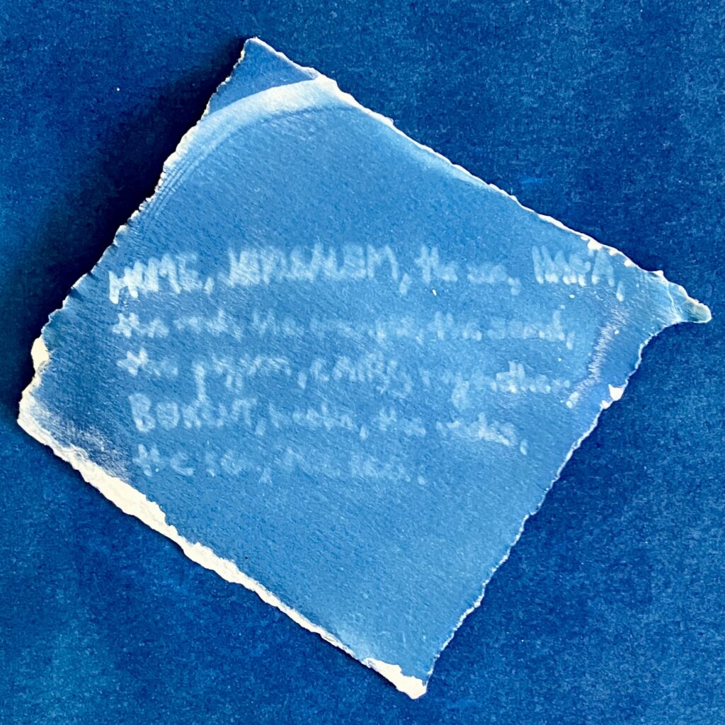 my omer practice for 5785 was a daily cyanotype illustrating the poems from Mosab Abu Toha’s ‘Forest of Noise’, a poetry book published in 2024 about life in gaza. you can find the poems that these cyanotypes illustrate in my ig highlights.